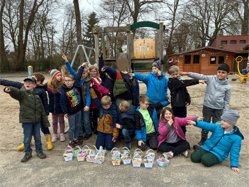 Am letzten Schultag hieß es für die Schülerinnen und Schüler der Deichschule wieder „Wer suchet, der findet!“ Mit viel Spaß und Freude wurden die gefüllten Osterkörbchen gesucht, die zuvor mit viel Mühe angemalt und gestaltet wurden. Auf dem Schulhof und im Pastorengarten war das ein oder andere Versteck gar nicht so leicht zu finden.
